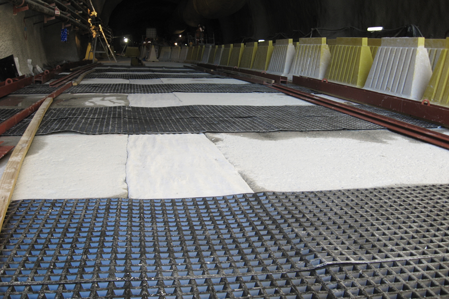 Cavidrain consists of a single cuspated HDPE (High Density Polyethylene) core. The function of the product is to provide an external drainage layer between underground construction and the ground itself. Alternatively, it may be used as robust drainage layer to collect seepage between a porous or leaking wall, tunnel lining or floor slab and a new render, floor screed or slab.