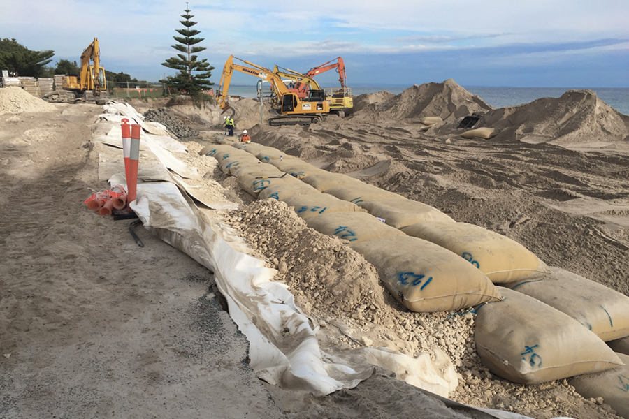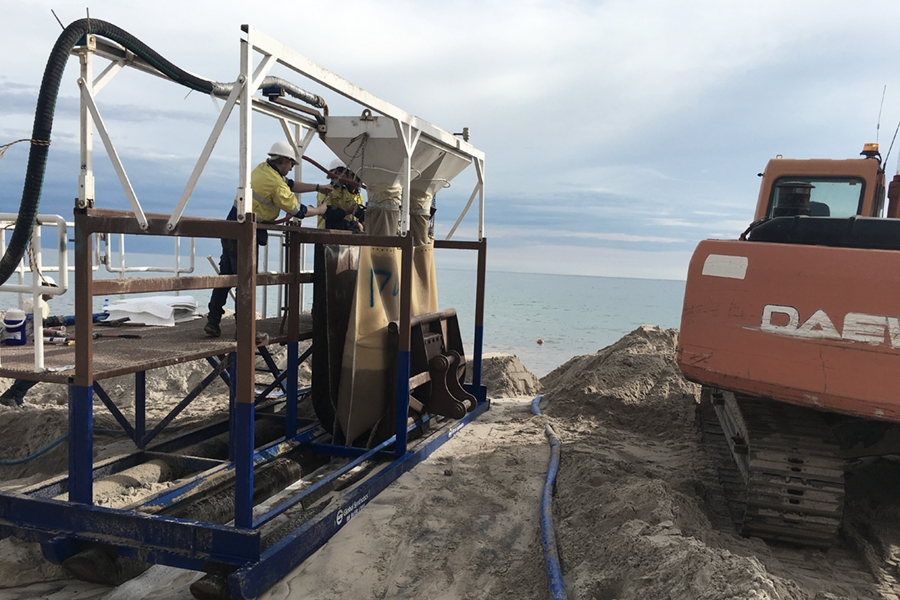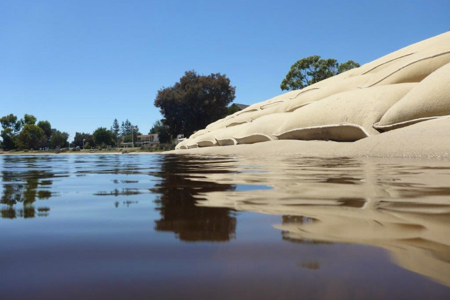 FiberRock® Geotextile Sand Containers are constructed from heavy duty staple fibre virgin polypropylene or cost effective recycled polyester geotextiles. Standard containers range from 2.5 m3 to 0.3 m3 in size and can be manufactured with coarse abrasion resistant outer Anti-Vandal and Fibertex composites or standard single ply geotextiles.