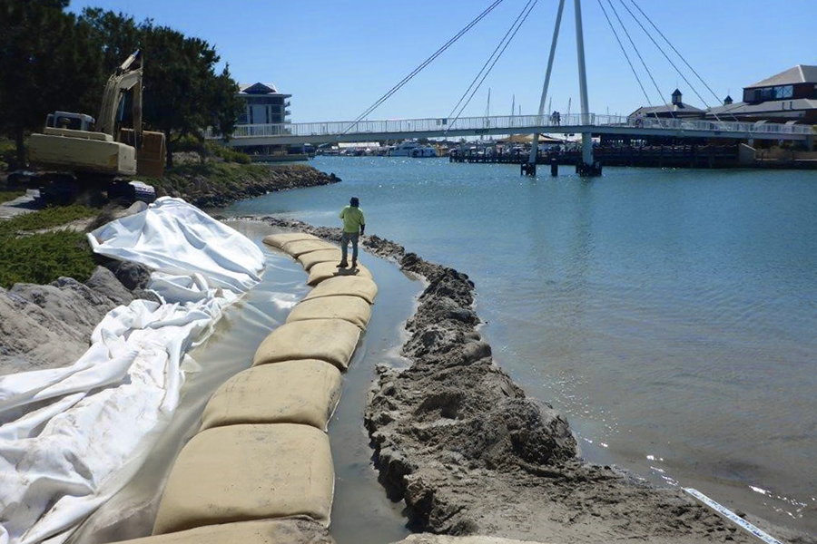 FiberRock® GSC’s are UV-stabilised, resistant to acids and alkalis and are protected against attack from fungi or rot. FiberRock® GSC’s are used in structures ostensibly for shoreline erosion protection against wave and current action, such as sea walls, revetments, groynes and breakwaters.