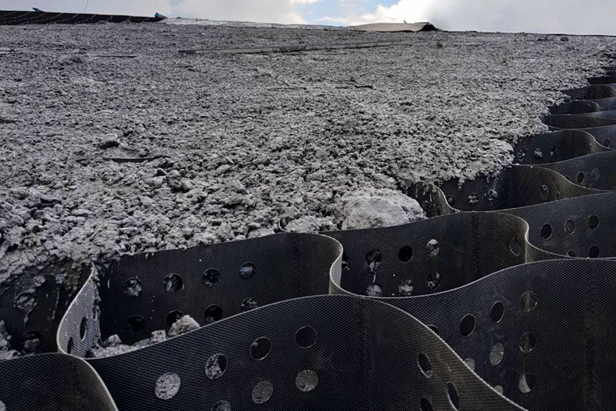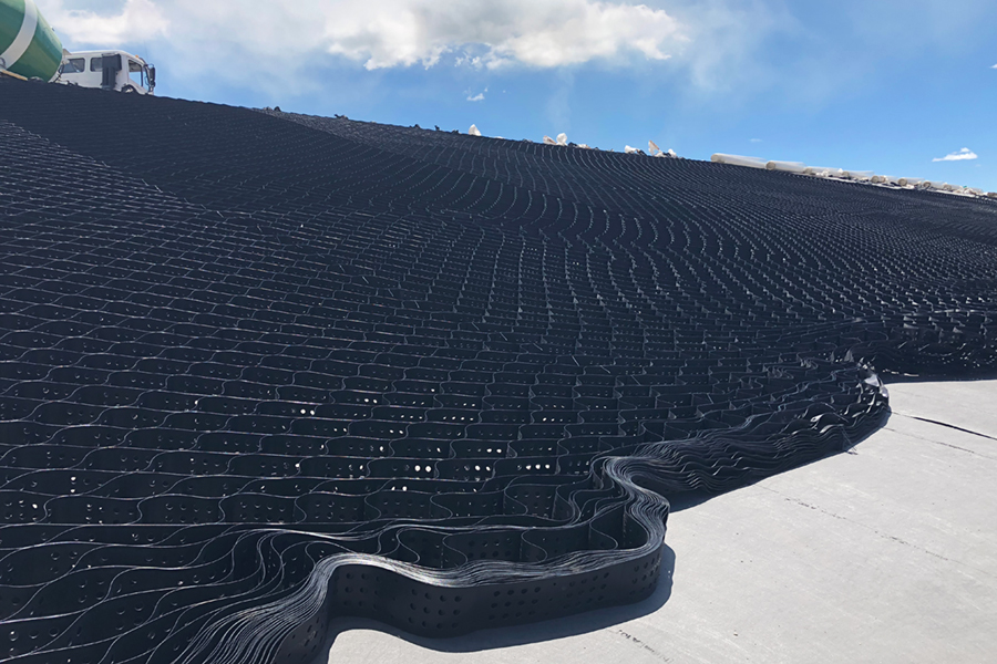 This expandable confinement system is effectively used for slope protection and basal reinforcement on low CBR subgrade in roads and railway ballast.