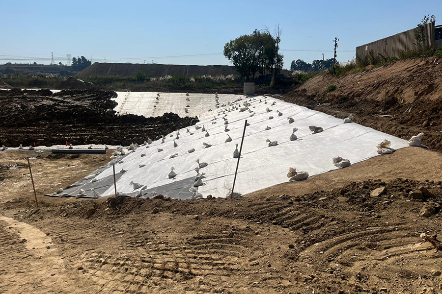Pozidrain when laid forms a blanket (horizontal, sloping or vertical) to collect and transmit water or gas from the surrounding ground into adjacent ditches or pipes. Pozidrain also protects geomembrane liners from physical damage by the backfill. Pozidrain must be finally covered.